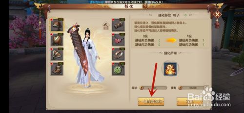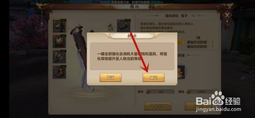 一键全部强化将消耗大量铜钱和道具,但会将强化等级提升至人物当前等级,如下图所示。