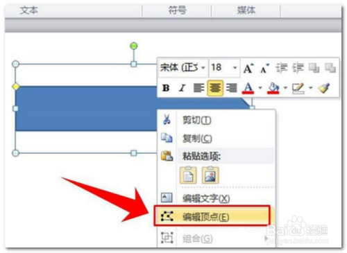点击鼠标左键选中箭头符号,然后点击鼠标右键,在列表中选择【编辑顶点】。