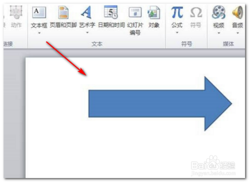 选择好箭头符号以后,在PPT的画布上选择一个起点,然后按住鼠标左键不动,拖动鼠标,到某一位置,然后松开鼠标左键,图形就生成了。