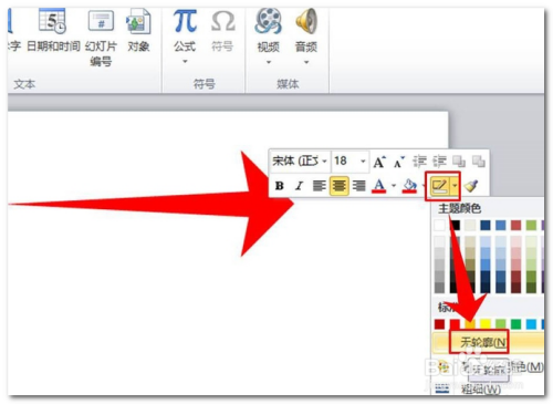 同样的选中箭头图形后点击鼠标右键,点击轮廓线的设置图标,然后在列表中选择【无轮廓】,任意形状的箭头就设置完成了。