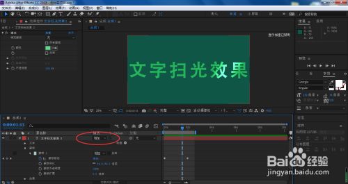14、当前虽然已经做好了文字扫光效果,但看起来还不够亮,我们点击文字层右侧的叠加模式