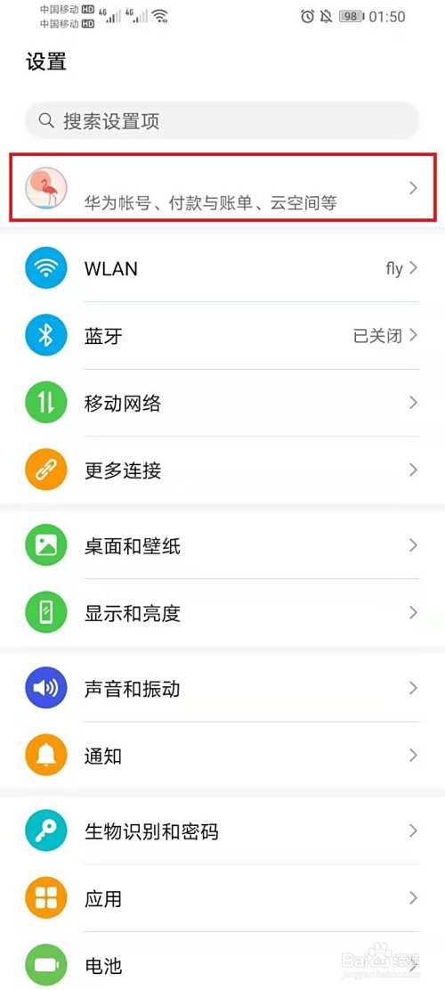 点击【华为帐号】,进入帐号中心界面。