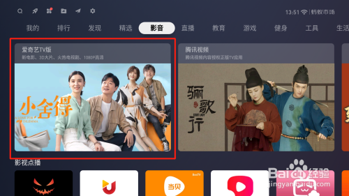 6、切换到影音版块,第一个就是爱奇艺,点击即可下载,沉浸式享受综艺《青你3》