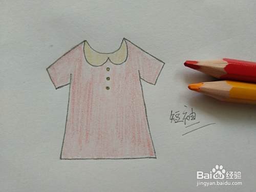 最后给短袖涂上颜色,让画面变得更丰富,这样短袖就画好了。
