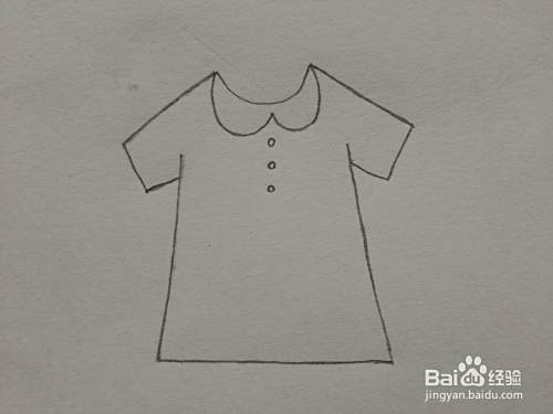 在衣领的下方画三个小圆,作为短袖上的纽扣。