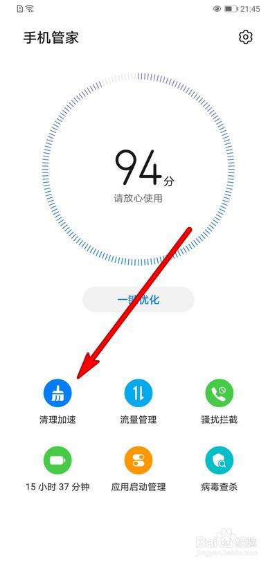然后选择清理加速。