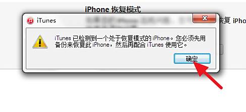 接着iTunes会提示检测到恢复模式的iPhone,就进入DFU模式了,注意以上过程中iPhone都应处于黑屏。