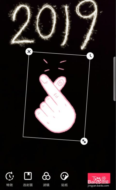 同样的方法我们增加另外一个比心的贴纸特效,贴纸添加完毕后,点击下一步,就可以发步2019比心视频。