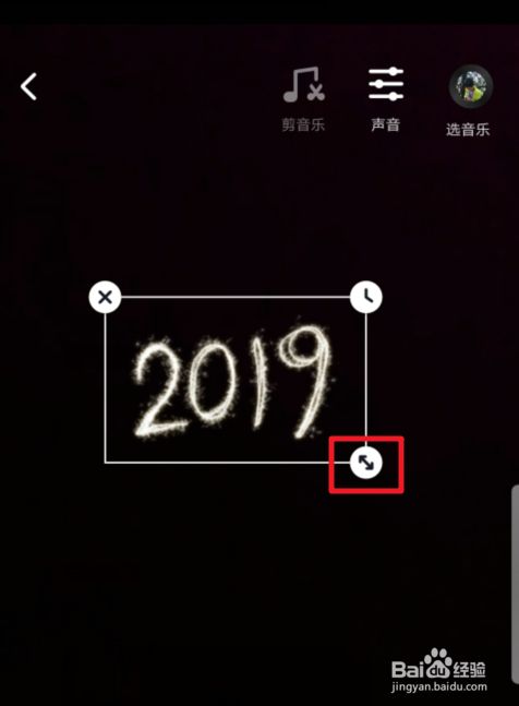 点击后,贴纸就会出现在视频中,我们可以拖动贴纸的位置,同时滑动下方的箭头也可以放大或缩小贴纸,可以根据自己的喜好进行调节。