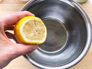 蛋清、柠檬汁和白糖混合,打发。