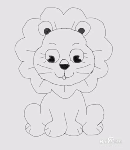 再在头部的基础上画出小狮子的毛发,如图所示: