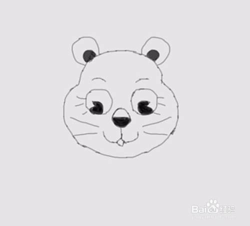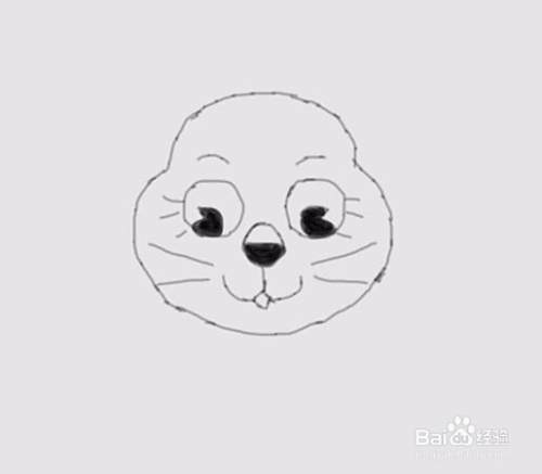 在眼睛下面画出小狮子的鼻子,在鼻子下面画出小狮子的嘴巴,在嘴巴的两侧画出小狮子的胡须,如图所示: