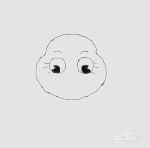 在头部上画出小狮子的眉毛,然后在眉毛下面画出小狮子的两只眼睛,如图所示:
