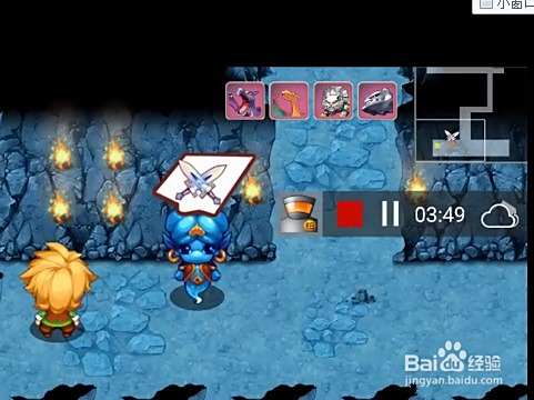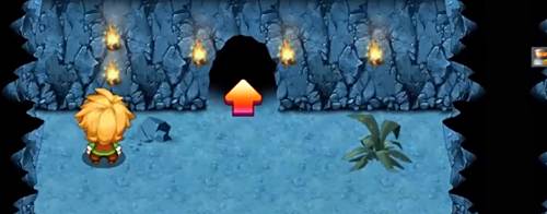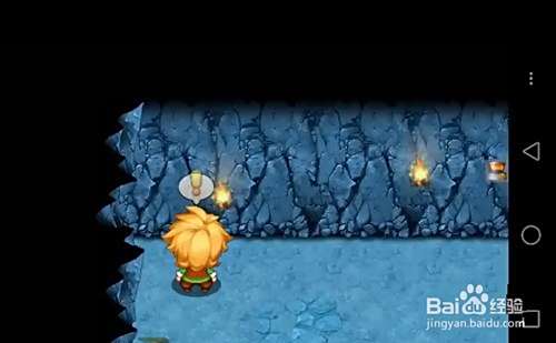 洞口下方,岩石破坏掉之后,往下走,左边四个火把在一起的是机关。