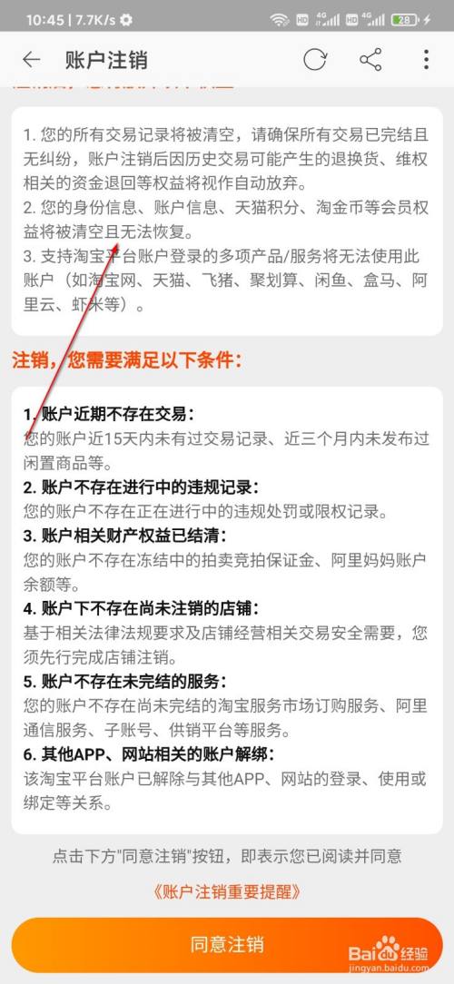 最后可以看到上方的协议,一旦注销是无法找回的。