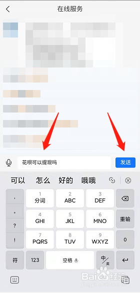 输入【花呗可以提现吗】,点击发送