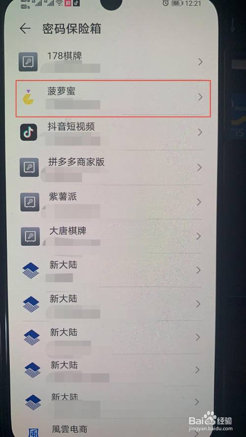 点开“密码保险箱”,在该界面向上滑手机,找到“菠萝蜜App”应用,如图
