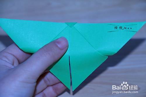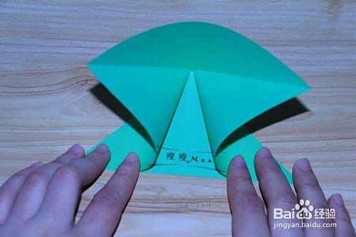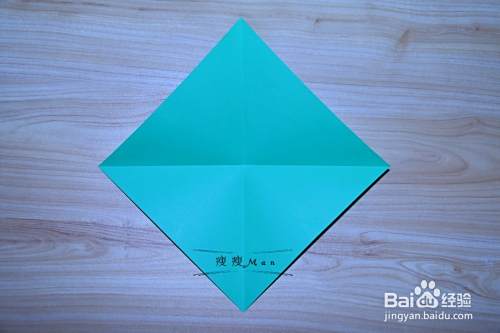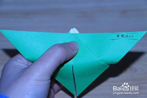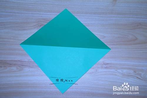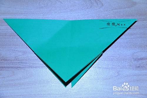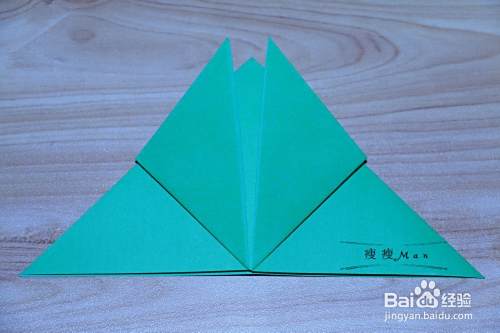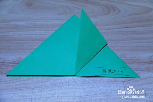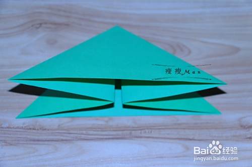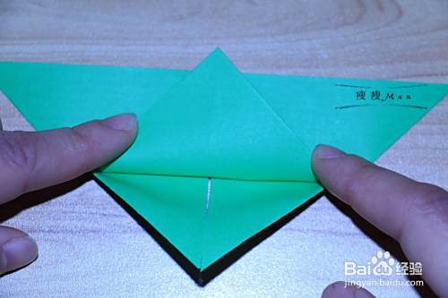 把顶点向底边翻折,但不要压,而顶点要多出底边一个小三角形,如图
