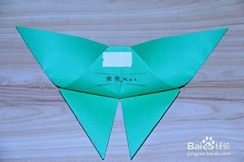 把双面胶贴在小三角形上,在把小三角形翻折下,如图