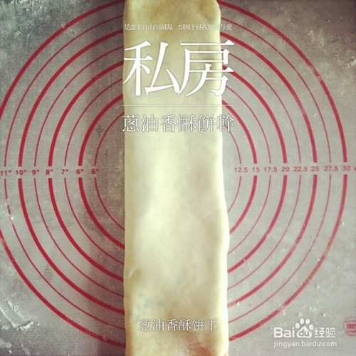 案板上撒一些面粉防粘,将面团用擀面杖擀成长方形。