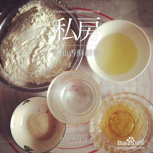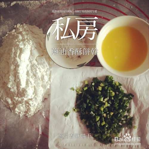 准备好油酥的配料。香葱切成尽量细的岁末,黄油切小块隔水加热融化成液态。