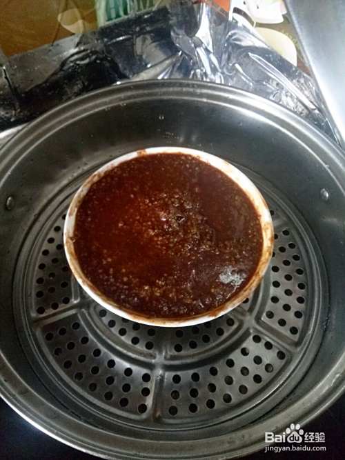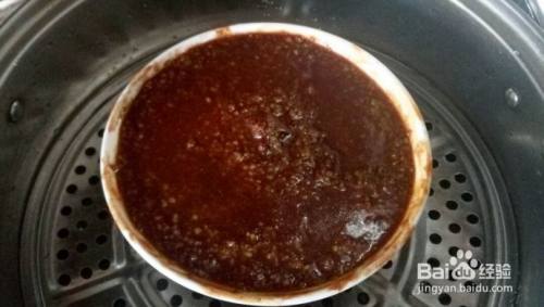 蒸碗提前涂抹一层甜面酱,肉皮向下,一片肉一层米粉的码放好!用剩下的米粉封口。冷水上锅蒸,上气后蒸2小时左右即可