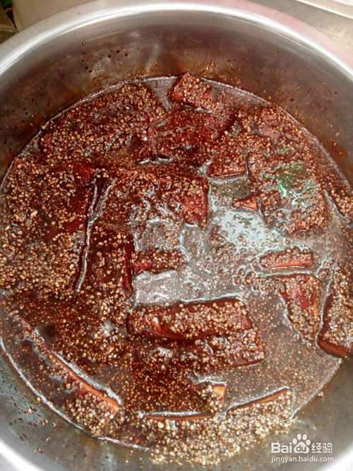 將甜面酱3勺,老抽3勺,香油3勺,十三香2勺(可放可不放),红糖150g(根据自己喜好,不喜甜可以少放),大料1个,腐乳1块。放在一个盆里搅拌均匀