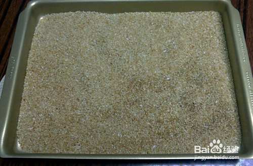 大米洗净,用净水泡米一宿。第二天捞出放在屉布上控水,8分干的时候用擀面杖擀碎,类似于砂糖大小。(不要擀成粉状,吃起来会没有口感)用无油的干净炒锅將米粉炒至金黄色,晾凉备用