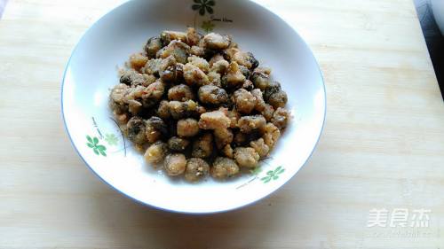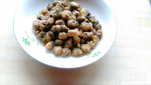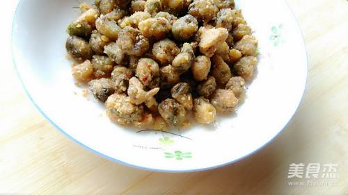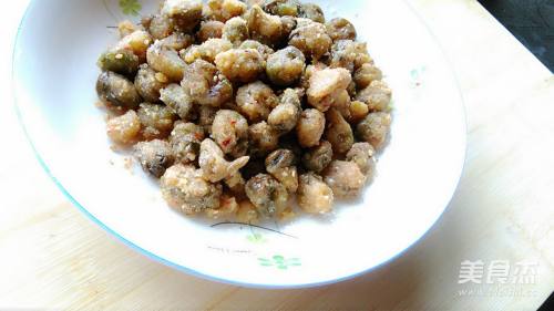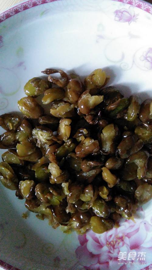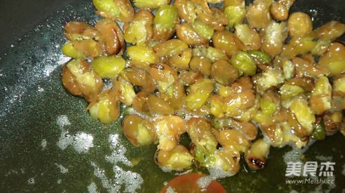 9倒入炸好的蚕豆关火快速翻炒让蚕豆裹满汤汁