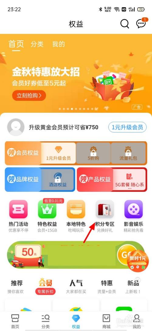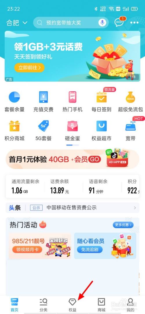 打开中国移动app,在权益选项下打开积分专区选项。选择权益,单击兑换选项,确定即可完成领取。