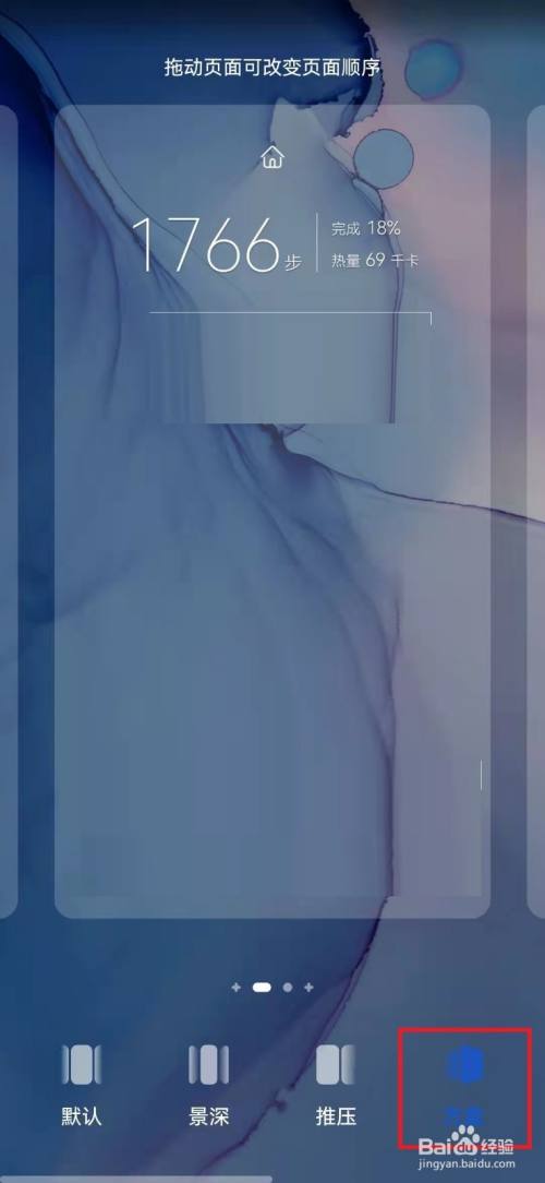 在华为手机桌面,双指捏合操作后,进入手机桌面管理页面。