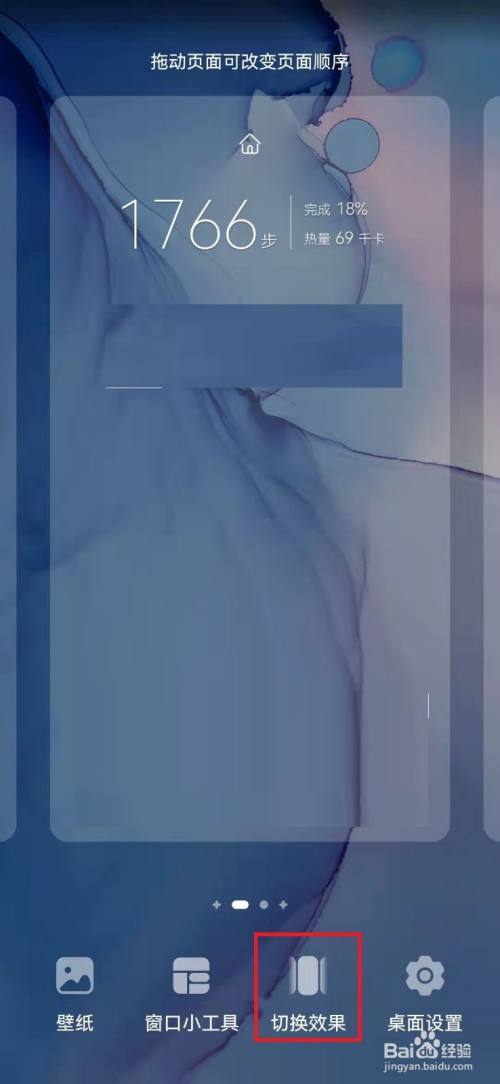 在手机桌面管理页面,点击【切换效果】设置项、