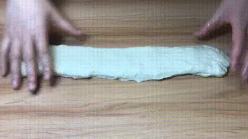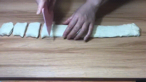 面板上先抹上一层油,防止沾面,面取出不用揉面直接整理成长条。
