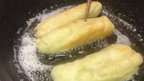 等油温五成热的时候 ,开始下入油条,炸成金黄色就可以出锅了。