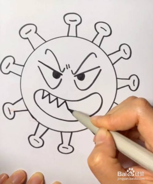 为病毒在大圆圈内部画上可恶的表情。