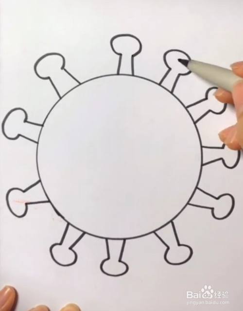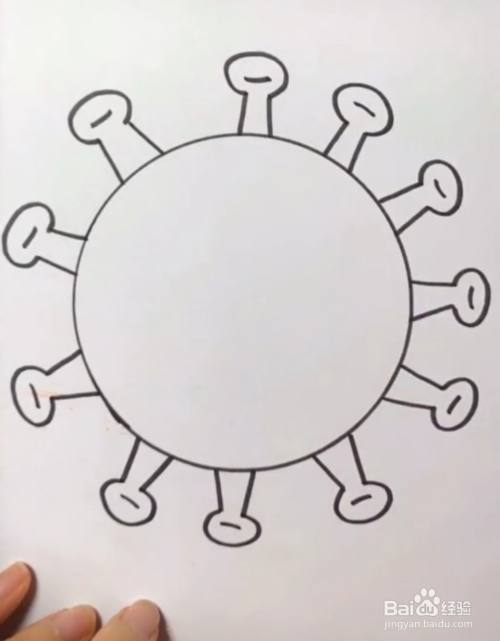 在小竖线上,画上小圆圈,以完成病毒的大致轮廓。