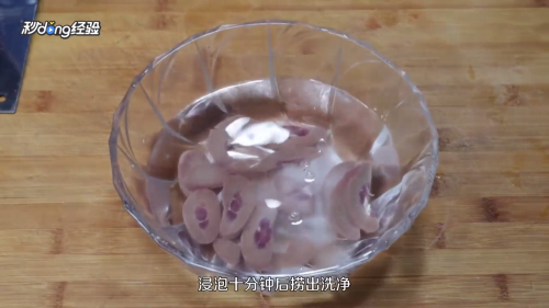 放入两勺盐,浸泡10分钟后,捞出洗净。