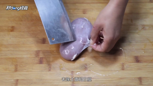 将准备好的猪腰花洗净,去除上面的白膜,切成薄片。