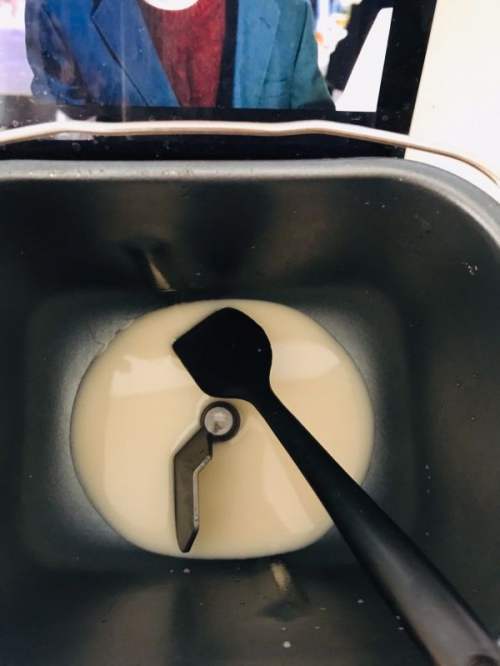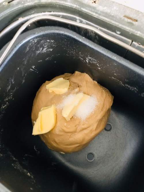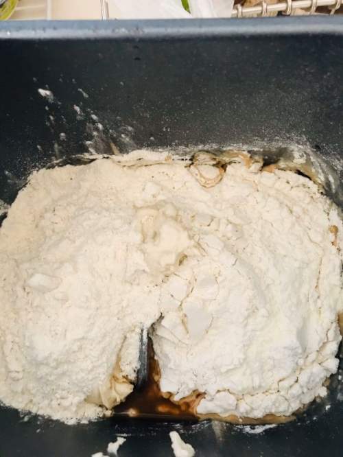 3面包机先放液体,再放除了黄油和海盐之外所有固体,启动面团20分钟。