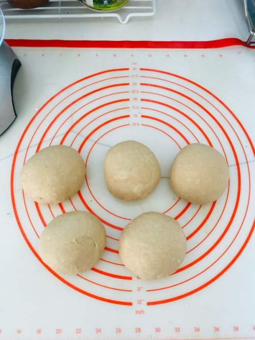 8面团分割成5个面团,滚圆,松驰20分钟。