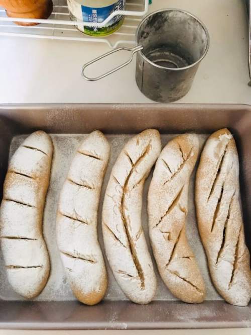15面团二发到1.5倍-2倍,取出,撒粉,割包,随心所欲。烤箱预热好,快速向烘培石倒热水,水量要少,速度要快。