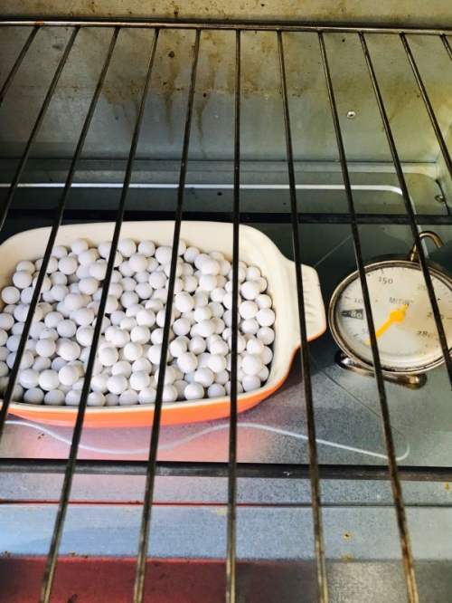 14预热烤箱,我家烤箱没有蒸汽功能,我用烘培石制造蒸汽,烤箱预热200度15分钟。