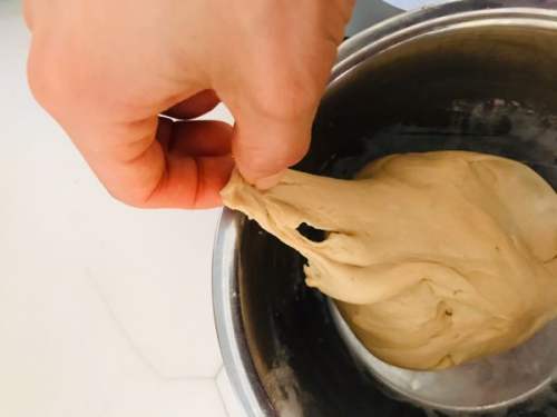 5面团出筋,拉扯面团会有边缘均匀的洞、注意揉面过程面团温度低于26度。