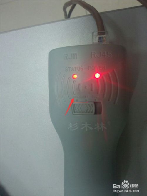 检测线路时,将网线的一端水晶头插在下图仪器的RJ45插槽中,再将仪器的按钮推到SCAN那边;然后打开用另一仪器去找此网线,在众多的网线中找此同一根网线,当靠近的网线尖头仪器发出“叮咛叮咛叮咛”的响声时,那此根网线就是插在另一仪器上的那根网线了。