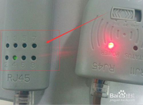 如果下图箭头指示的仪器的数字是按顺序的跳动,则说明此网线合格;如果仪器的数字不是按顺序的跳动,则说明此网线不合格。
