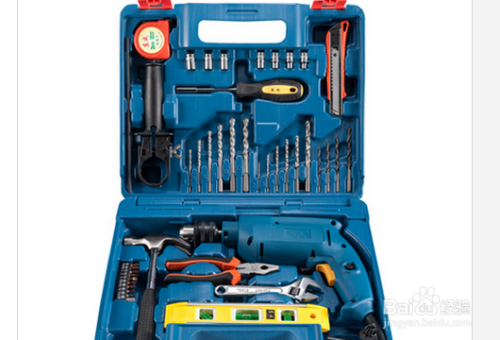 东成冲击电钻套装采用的是蓝色的塑料箱外包装,里面有很多的格子,放着各种配件。包装很有质感,并且可以手提。