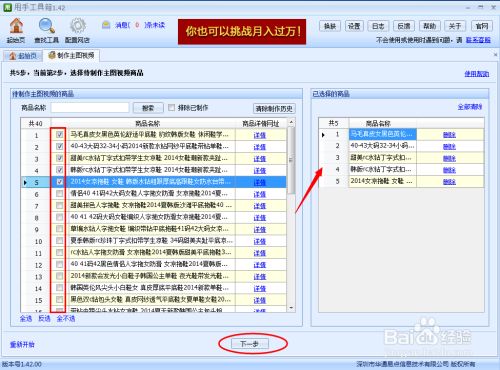 勾选待制作主图视频的商品后,点击“下一步”