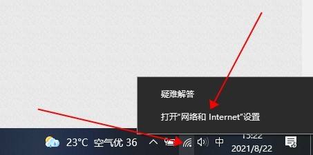 首先右键网络图标,然后点击打开"网络和Internet"设置按钮,见下图。