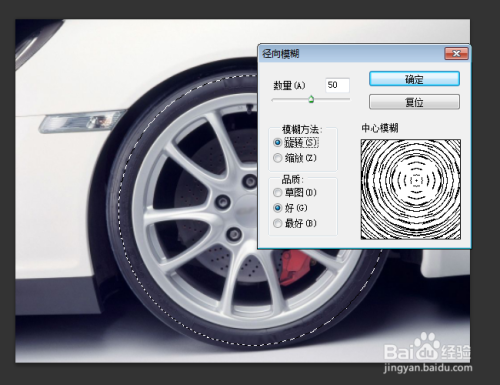 弹出径向模糊的对话框后,调整数量,然后勾选模糊方法中的旋转,如下图所示。