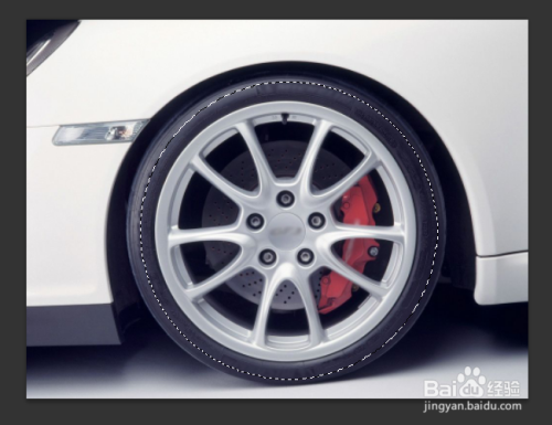 在图片上拖动鼠标画一个圆,框住车轮,如下图所示。